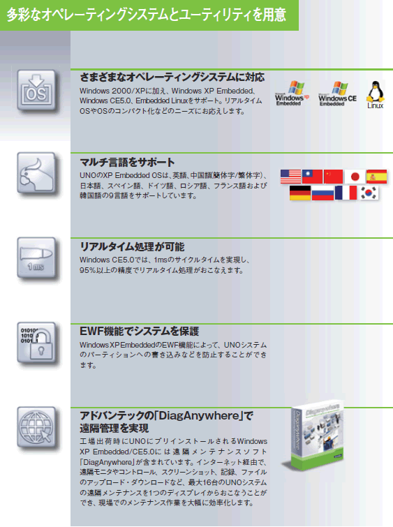 組み込みコンピュータARKは、広範な温度範囲、設置スペースに制限のあるアプリケーション向けに設計された非常に小型で強力な、ファンレスシステムです。ARKシリーズは組み込みOS技術を利用可能で、さまざまなI/O機能とネットワークオプションをサポートします。また取り付けは、VESAマウント、DINマウント、ウォールマウントなど柔軟に選択することができ、ARKシリーズへのアプリケーション範囲をさらに広げます。 |