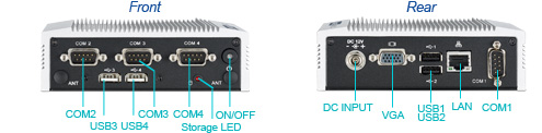最大2 x RS-232 および 2 x RS-232/422/485ポート(BIOSで選択)